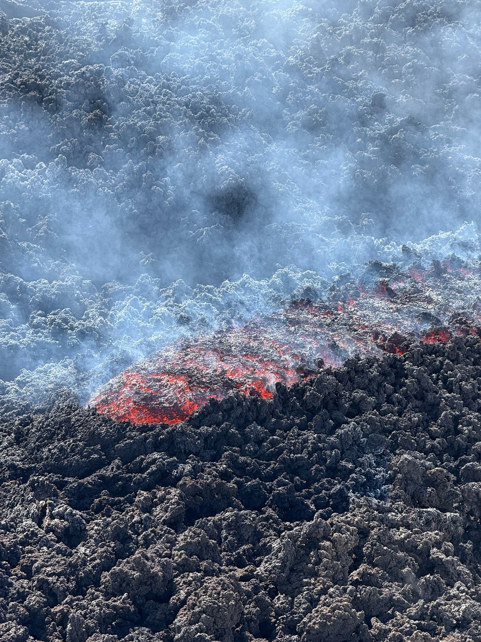 Da questa nuova apertura si è originata una colata di lava discretamente alimentata, che ha iniziato a scendere lungo il pendio innevato. Attualmente, la colata ha percorso una distanza di circa un chilometro, rimanendo attiva e avanzando lentamente.
