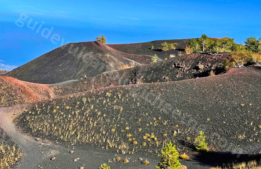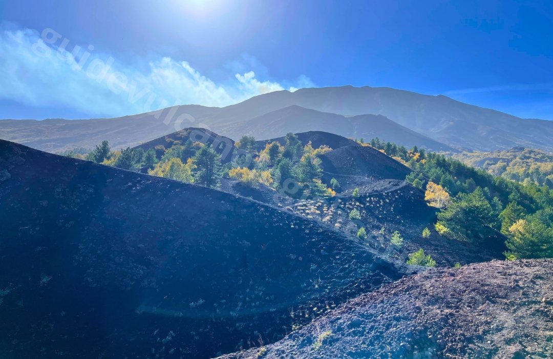 La première partie du parcours se déroule au cœur d’une forêt pittoresque de pins et de bouleaux endémiques de l’Etna, offrant aux visiteurs une introduction à la flore locale. En montant, le paysage se transforme, révélant une vue panoramique sur les plantes endémiques, les anciennes coulées de lave et les dépôts de matériaux pyroclastiques tels que des bombes volcaniques, des scories et des cendres.