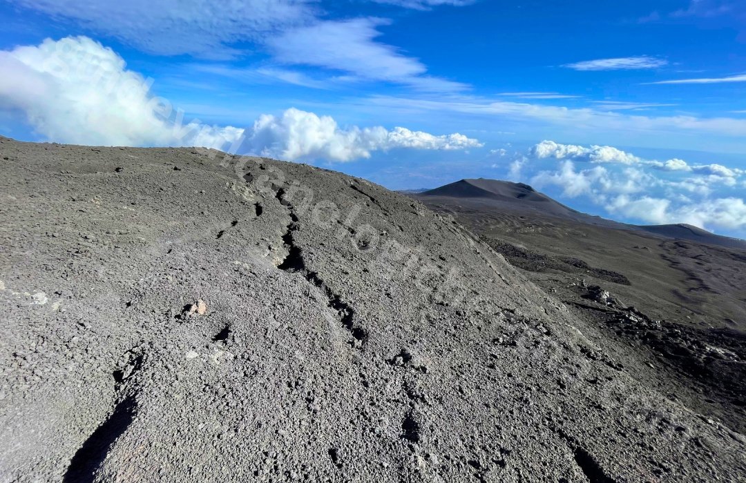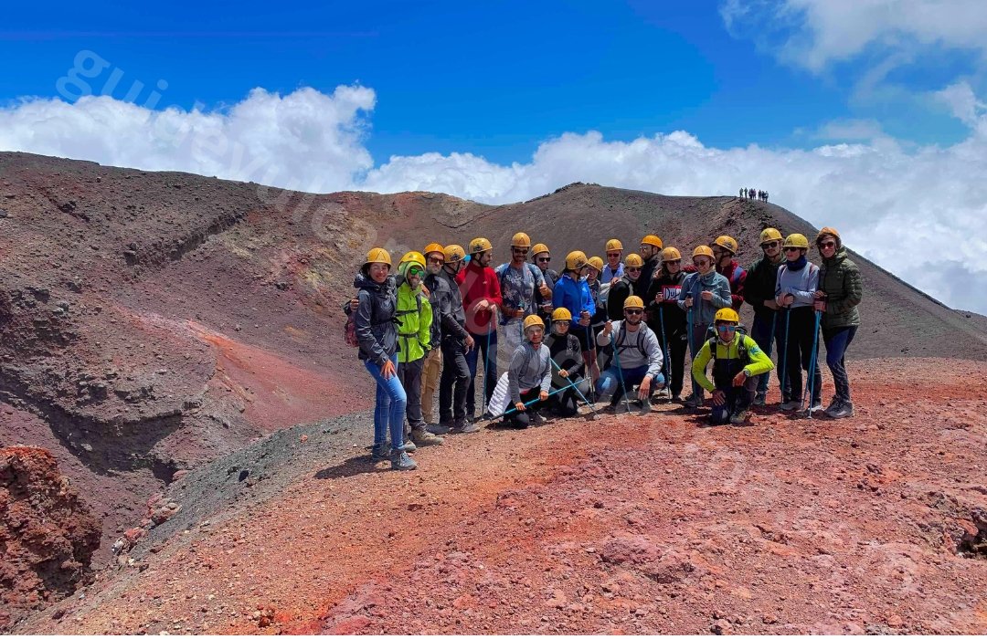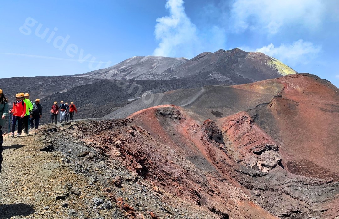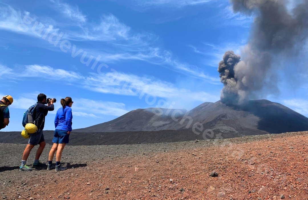 Les prochaines étapes seront : l’évent effusif de 2002 avec la possibilité de toucher le gaz des fumerolles encore chaud, le canal de coulée de lave, les Cratères Barbagallo (éruption de 2002) et les coulées de lave des activités récentes qui ont affecté le cratère de Sud-Est.