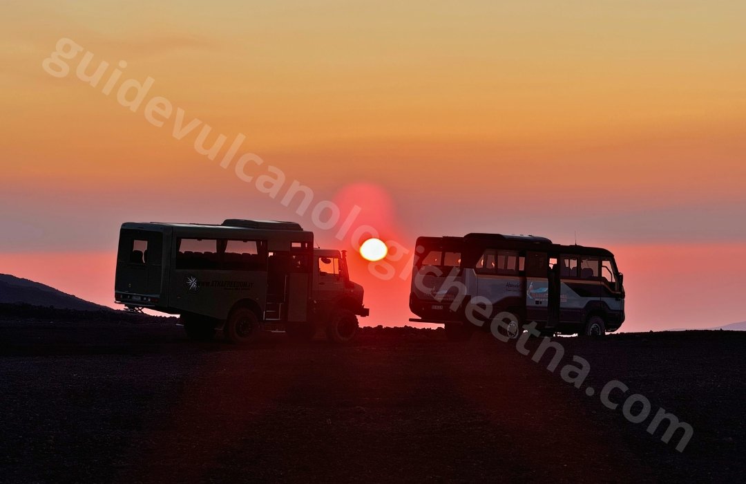Partenze previste da Piano Provenzana alle ore 18:00 con mezzi fuoristrada fino a quota 2800 mt, dove tra le lave del Cratere di Nord Est, inizieremo un breve trekking fino al raggiungimento di Punta Lucia, luogo adatto a vivere la magia e l’emozione del tramonto con lo splendido panorama della Sicilia, delle isole Eolie e dei crateri costantemente attivi alle nostre spalle. Ritorno previsto a piedi (poco più di un chilometro) fino al punto di partenza dei mezzi fuoristrada per il rientro a Piano Provenzana.