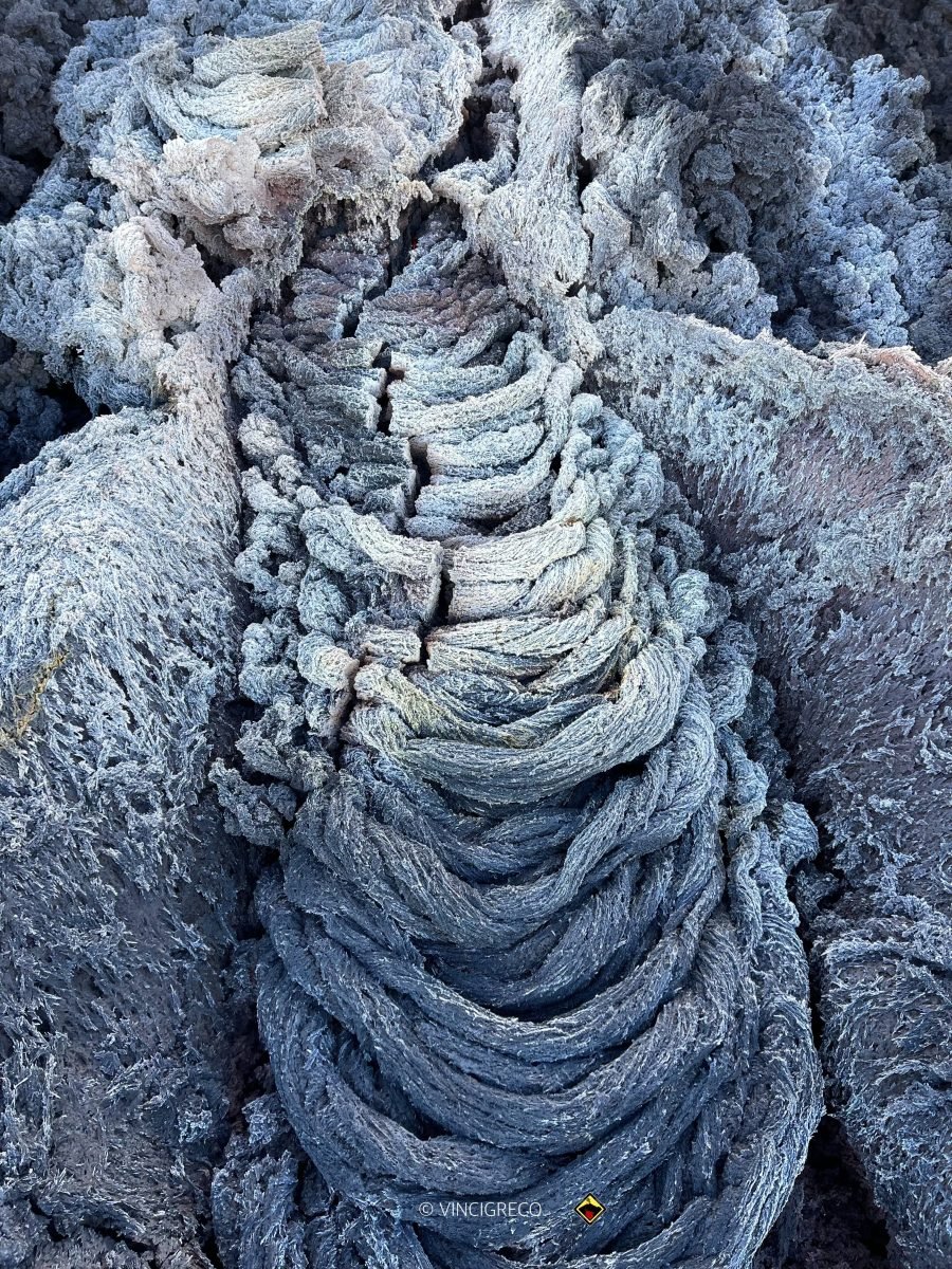 La parte superficiale di queste lave è generalmente « a piccoli blocchi scoriacei »; non mancano però esempi di lave terminali « a corda »: la morfologia superficiale dipende dalle caratteristiche dell’attività del vulcano immediatamente precedente l’efflusso lavico.