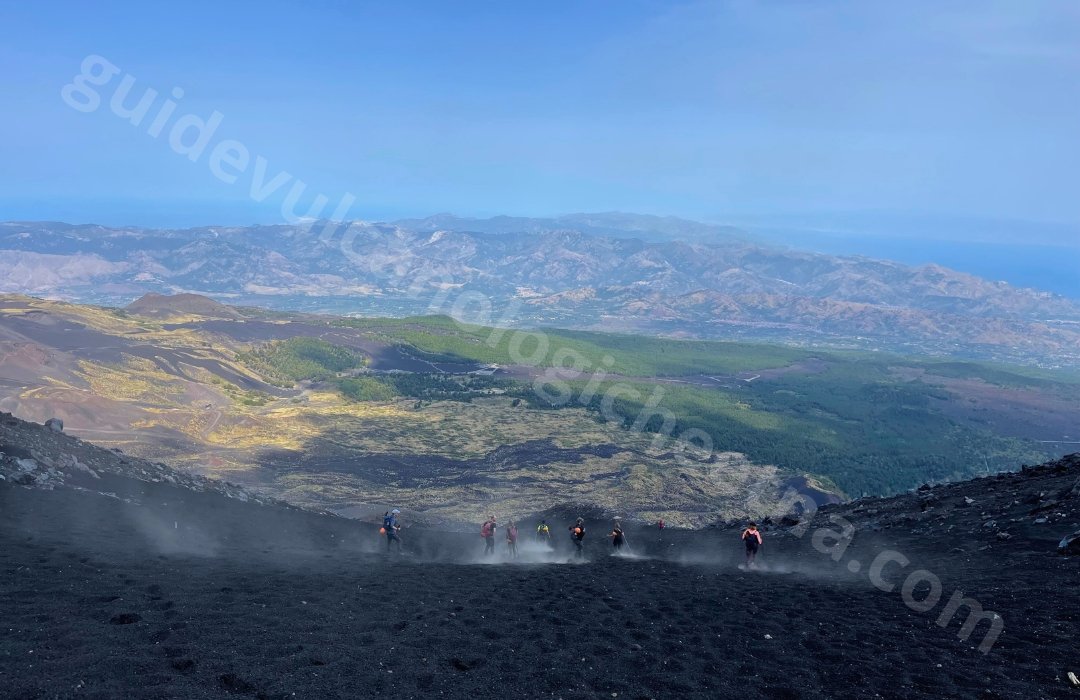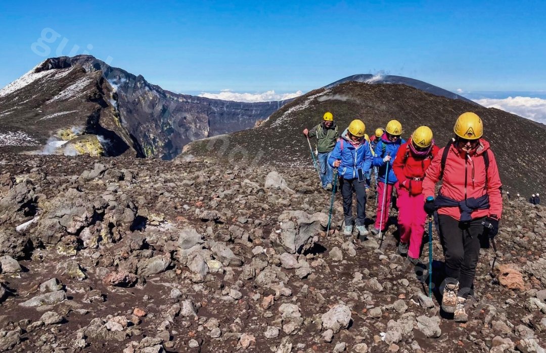 Opstijgen met terreinwagens langs de panoramische weg aan de noordkant van de vulkaan, tot een hoogte van 2825 m. Vanaf dit punt begint de beklimming te voet van 5 km op een pad omgeven door vulkanische bommen en slakken, met een totaal hoogteverschil van 490 meter tot de rand van de Centrale Krater van de Etna, op een hoogte van 3315 m. Eenmaal op de top, nemen we een pauze om de grootsheid en de uniciteit van de vulkanische omgeving en de processen die ermee samenhangen te bewonderen, samen met het spectaculaire panorama vanaf het dak van Sicilië (zichtbaarheid afhankelijk van weersomstandigheden en vulkanische gasemissies).