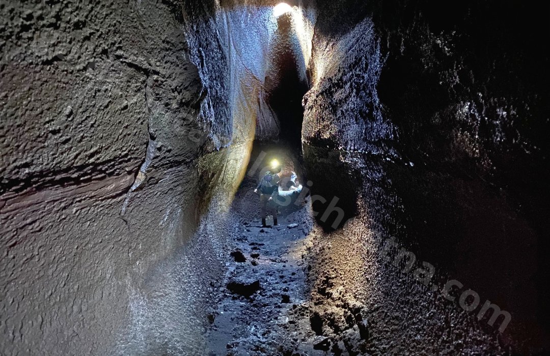 Na ongeveer anderhalve kilometer bereik je een vallei waarin zich de Grotta di Serracozzo bevindt (1851 meter), een lavatunnel ontstaan tijdens de uitbarsting van 1971.